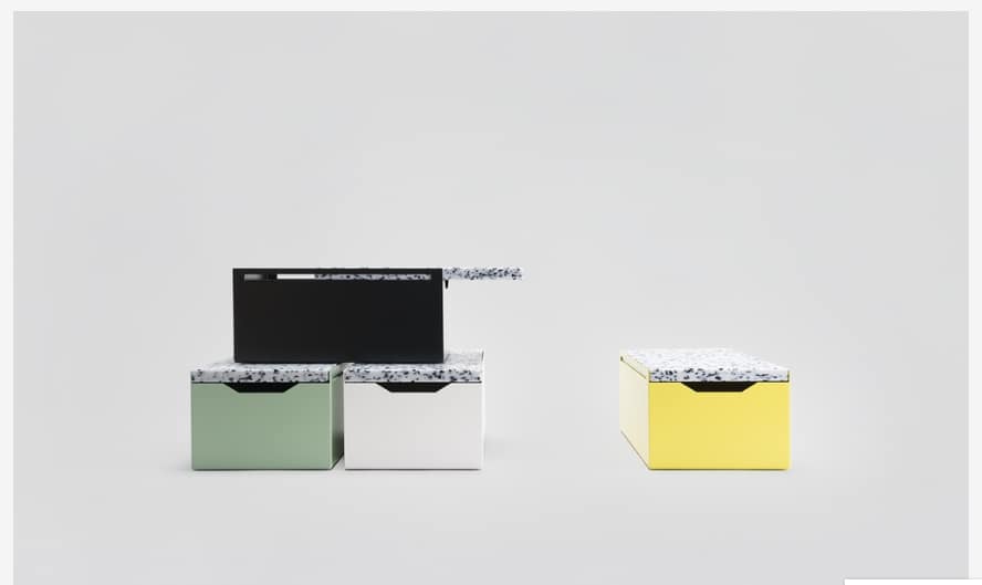 Gesagt, getan, doch der Weg war oftmals steiniger als gedacht. Besonders die vielen neuen Aufgaben, die so ein Betrieb mit sich bringt, hat die Gründer anfänglich zu schaffen gemacht. „Die größte Herausforderung war eigentlich, sich bewusst zu machen, dass man sich vom Designer zum Unternehmer entwickeln muss, um das Label am leben zu halten. Diese neue Form der Verantwortung frisst sehr viel Energie, aber man lernt auch unglaublich viel dazu“, sagt Philipp. Das Studium bereitet einen eben nicht auf die kaufmännischen Fragen nach Buchhaltung, Verkauf oder Vertrieb vor; alles Bereiche, die für die beiden Jungunternehmer somit neues Terrain waren. Auch die finanzielle Situation hat die Entwicklung des Labels auf eine harte Probe gestellt. Da es keine großen Geldspritzen gab, sondern einzig private Darlehen, konnte das Unternehmen nur organisch wachsen und hat sich letztlich durch jedes verkaufte Objekt wieder weiter finanziert. Mittlerweile sieht es anders aus. „Inzwischen tragen die stetig größer und lukrativer werdenden Projekte und Verkäufe das Unternehmen allein, was uns wirklich sehr stolz macht.“ Ein Verdienst, der sowohl auf das Durchhaltevermögen und das Herzblut der beiden Designer, aber auch auf deren innovativen und praktischen Interieur-Stücke zurückgeht. Auf die Frage nach dem ersten Erfolgsprodukt, gibt es eine klare Antwort: „Was den seriellen Verkauf betrifft, ist der Brotkasten in jedem Fall unser größter Erfolg und er hält immer noch an.“ Besagter Brotkasten ist in seiner Idee so simpel und genial, dass man sich ärgert nicht selbst darauf gekommen zu sein. Der Clou des Produkts ist der Deckel, denn er ist nicht nur Pendant zu dem aus Stahl bestehenden Korpus, sondern zeitgleich auch ein Schneidebrett. Dieses Brett gibt es in zwei unterschiedlichen Materialien. Wer es klassisch mag, greift zur hölzernen Ausstattung. Die ausgefallenere Variante besteht aus dem handelsüblichen P.E. 500 (Polyethylen), was ein beliebtes Material für Schneidebretter an der Supermarkt-Frischetheke ist. „Das Material bietet viele Vorteile. Es ist lebensmittelecht und waschmaschinenfest und damit sehr unkompliziert in der Handhabung“, erklärt Daniel. Das Besondere an dem Deckel des Brotkastens ist allerdings die Färbung. Normalerweise begegnen einem diese Bretter in langweiligen Standardfarben und vor allem in weiß. Bei mykilos bekommt das Schneidebrett jedoch eine besondere Note. „Daniel und ich lieben Straciatellaeis. Deswegen haben wir nach einem Brett gesucht, was dieser Anmutung ähnelt“, verrät Philipp. Gemeinsam mit der rechteckigen Stahlbox, ergibt der schwarz-weiße Straciatella-Deckel ein schönes Designobjekt, was nicht nur schmeichelnd für jede Küche ist, sondern auch von Praktikabilität zeugt. Dass es den Brotkasten dazu noch in vier unterschiedlichen Farben gibt, dürfte das Individualistenherz dann gänzlich in die Höhe schlagen lassen.