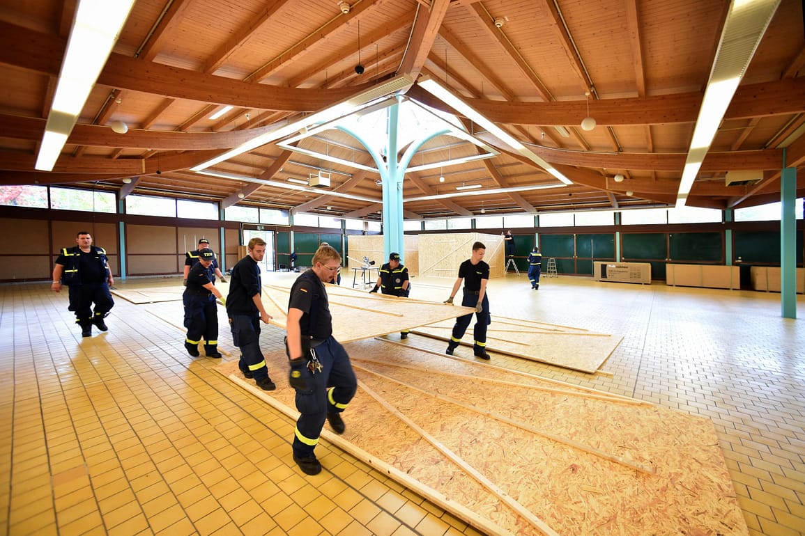 Foto: © THW, Aufbau einer Flüchtlingsunterkunft