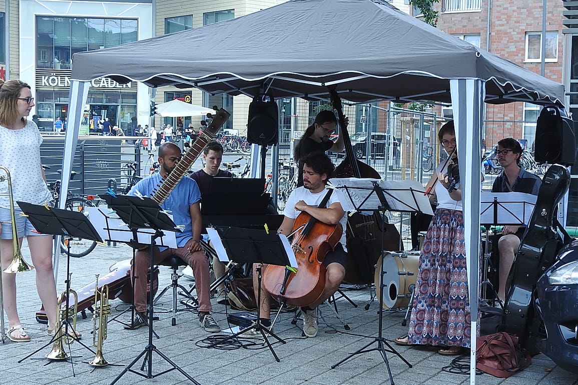 Seit Juni 2019 spielt das sechsköpfige Ensemble J.U.N.E. unter freiem Himmel in verschiedenen Kölner Stadtteilen für alle Menschen, stiftet dabei Zusammengehörigkeit und bringt Jazz in jedes Ohr.