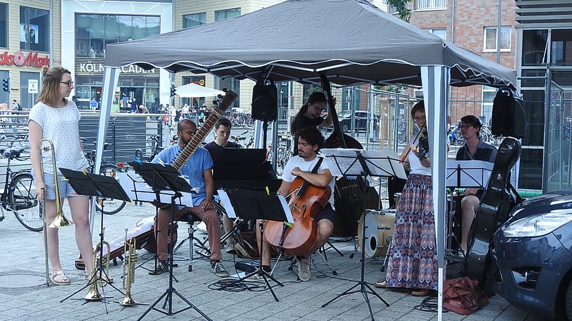 Seit Juni 2019 spielt das sechsköpfige Ensemble J.U.N.E. unter freiem Himmel in verschiedenen Kölner Stadtteilen für alle Menschen, stiftet dabei Zusammengehörigkeit und bringt Jazz in jedes Ohr.