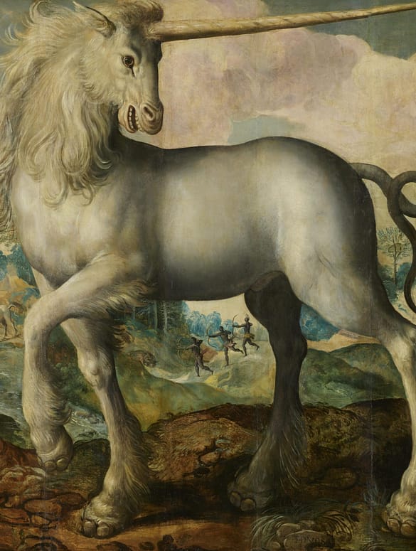 Einhorn, 1572, Öl auf Eichenholz, 137 × 136,5 cm, Staatliche Schlösser, Gärten und Kunstsammlungen Mecklenburg-Vorpommern, Schwerin, © Photo: Ulrich Pfeuffer