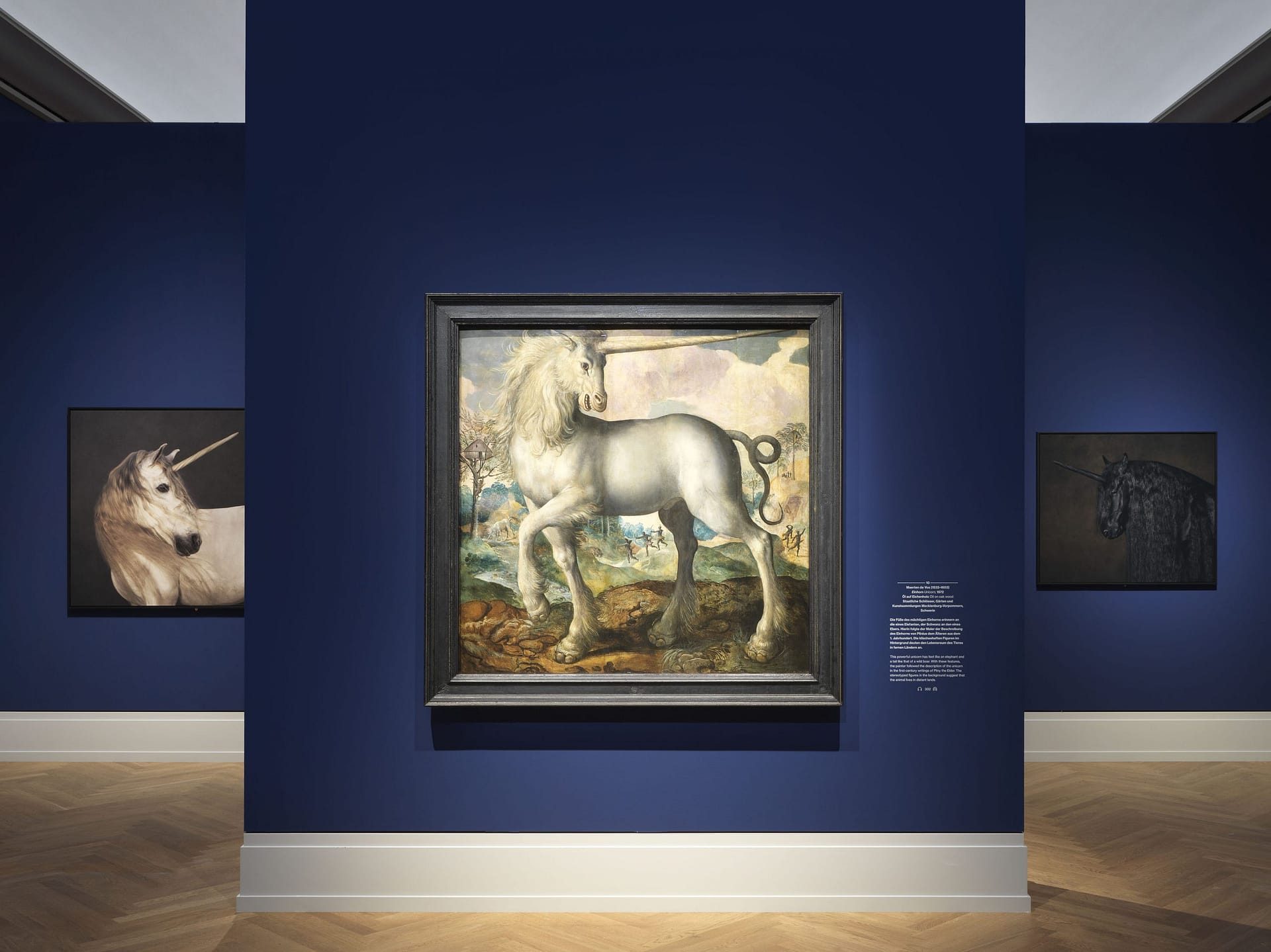 Einhorn, 1572, Öl auf Eichenholz, 137 × 136,5 cm, Staatliche Schlösser, Gärten und Kunstsammlungen Mecklenburg-Vorpommern, Schwerin, © Photo: Ulrich Pfeuffer