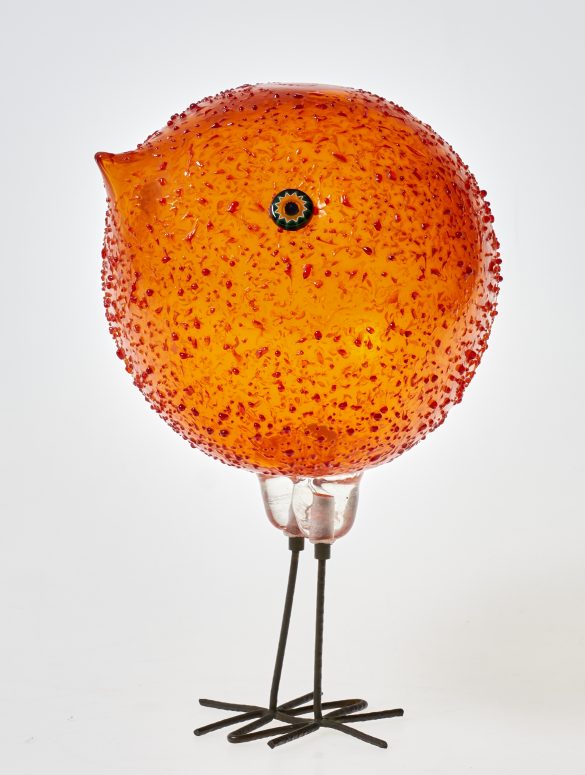 Titelbild: Alessandro Pianon, Orangefarbenes Küken (pulcino), Murano, ca. 1960–1962 (Entwurf), Orangefarbenes Glas, frei geblasen, aufgeschmolzene rote Krösel und Mosaikglasscheiben (murrine); Kupferdraht, gehämmert, in farbloses Glas gefasst, Ankauf, Foto: © Kunstpalast, Düsseldorf