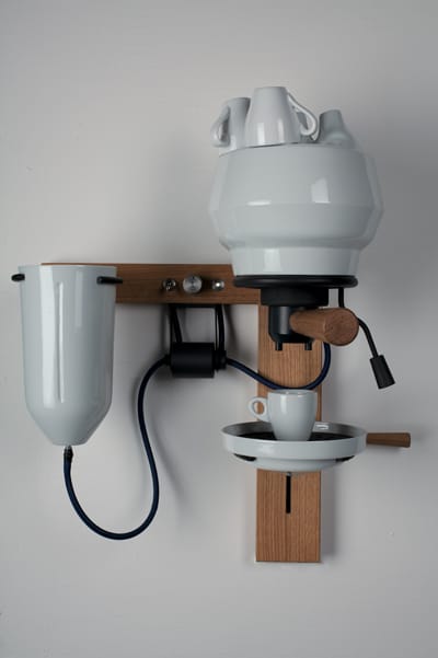 … dann verspricht die Espressomaschine „Seppl“ vom Jungdesigner Arvid Häusser exquisiten Kaffeegenuss. Neben dem außergewöhnlichen Design bedeutet die Verwendung von Porzellan einige Vorzüge. Das Material eignet sich hervorragend für den Umgang mit Speisen und Getränken, da es sich durch Geschmacksneutralität, einfache Reinigung und hohe Wärmespeicherung auszeichnet. Ein weiterer Vorteil ist die Befestigung an der Wand, da so mehr Platz auf der Küchenarbeitsplatte bleibt. Durch die Sichtbarkeit der einzelnen Komponenten kann man die Zubereitung des aufmunternden Espressos hautnah miterleben.